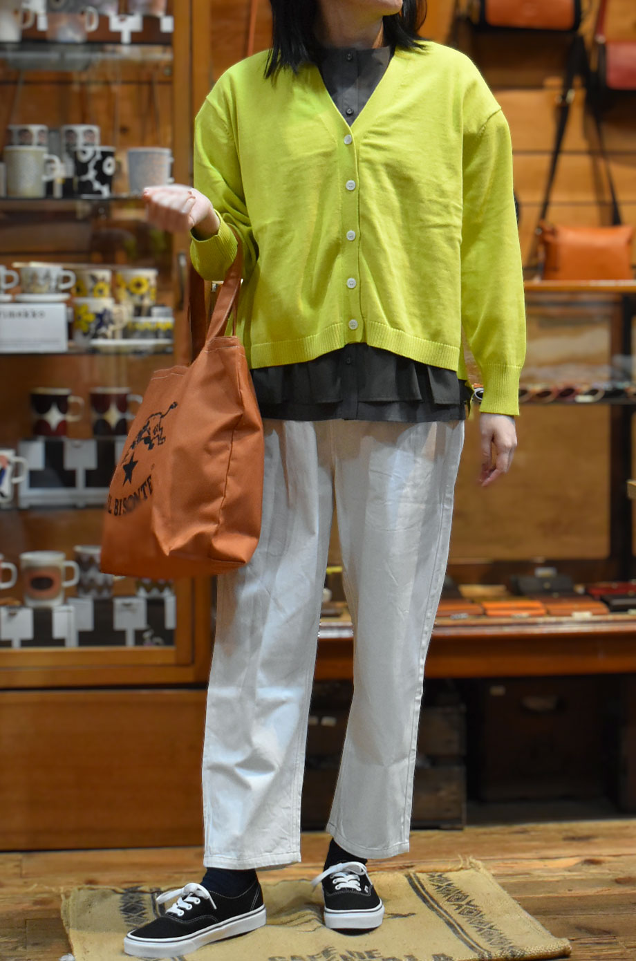 このカーディガンは、ゆったりシルエットで腰回りもカバーしつつ、どこか「おしゃれ感」を出してくれる頼れるアイテム。