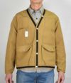 素材に60/40クロスを使用したカーディガンの多機能ジャケットです。 フロントに便利なポケットが6つ付き、前見頃の内側にポケットが1つ、バックにもマチ付きのポケットが付く収納力抜群のジャケットです。 フロントはスナップボタン式でナイロンテープで補強されております。 防水性の高い生地で気候の変化にも対応してくれます。 カーディガンタイプなのでTシャツやスウェット、シャツなど幅広いコーディネートでお楽しみいただけます。 春夏のキャンプシーンにもいいですね。