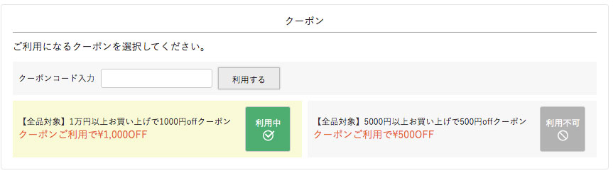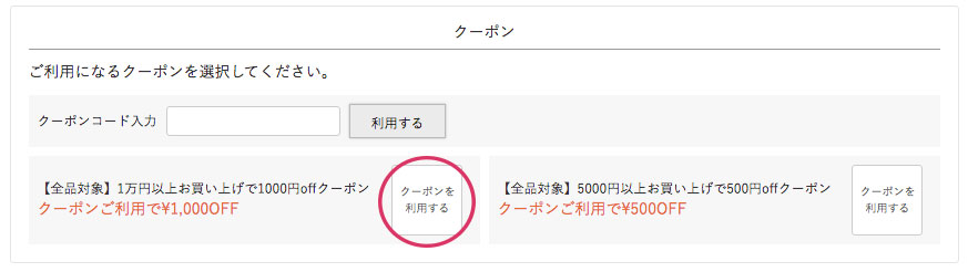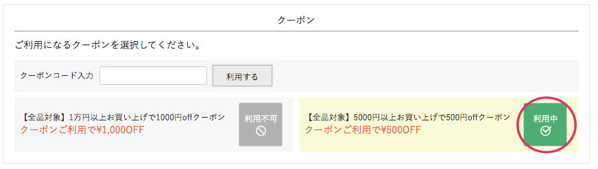 使いたいクーポンの「クーポンを利用する」をクリックすればご希望のクーポンが選択されます。
